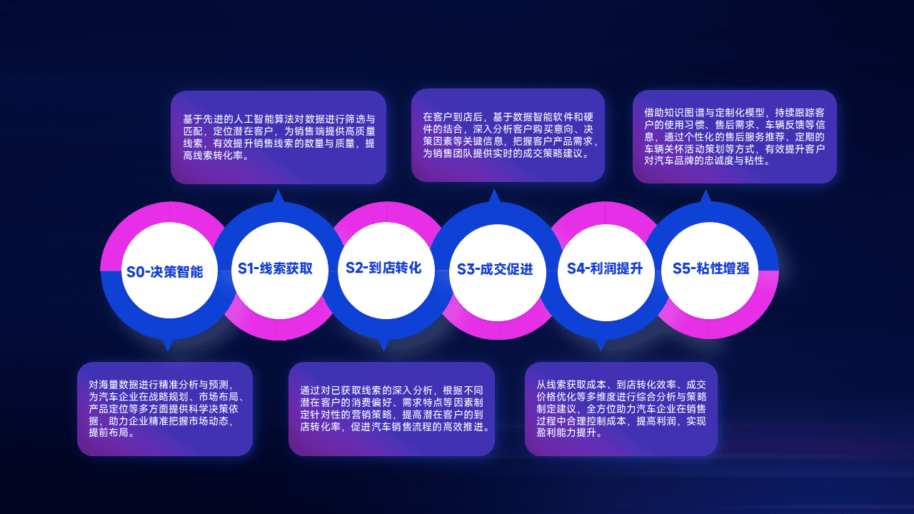 通过拓宽潜在客户来源、、优化线索分配并提高到店转化率,,,,以增强销售效率。。同时,,利用线索数据不断优化分析模型,,有效提升转化率,,,扩大营销影响力。。